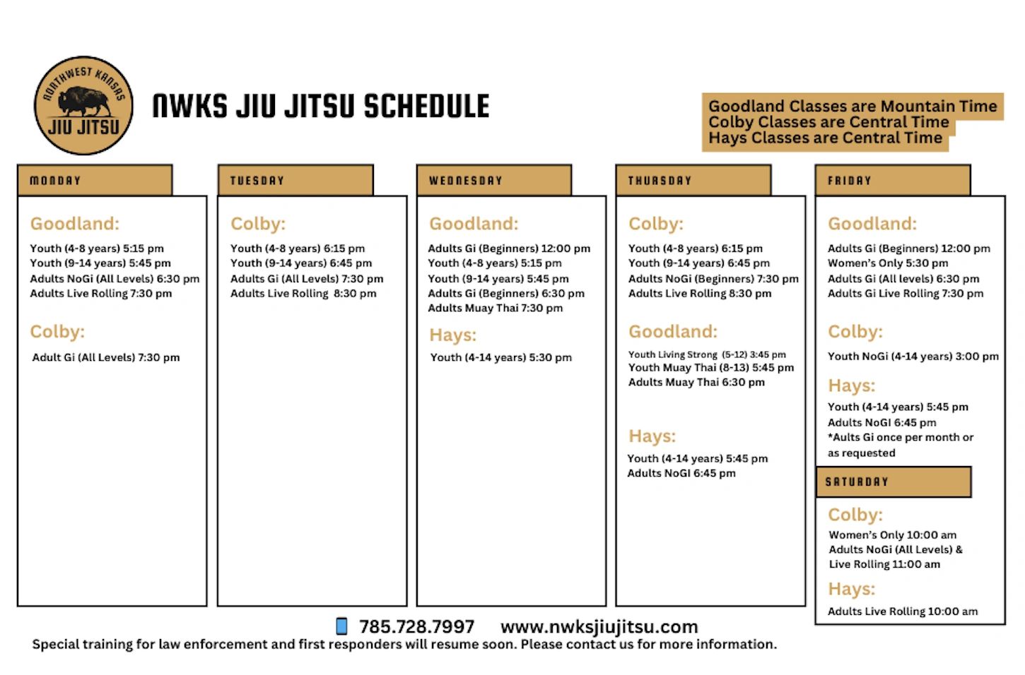 Goodland Brazilian Jiu Jitsu opened in June 2021 and started offering classes at the local activities center. This was the start of jiu jitsu in Northwest Kansas! Goodland BJJ quickly out grew that space and moved to its current location in June of 2022. Colby Brazilian Jiu Jitsu opened in April 2022 after several requests from the community to have classes in Colby as well. In 2024, both academies were rebranded to Northwest Kansas Jiu Jitsu.
